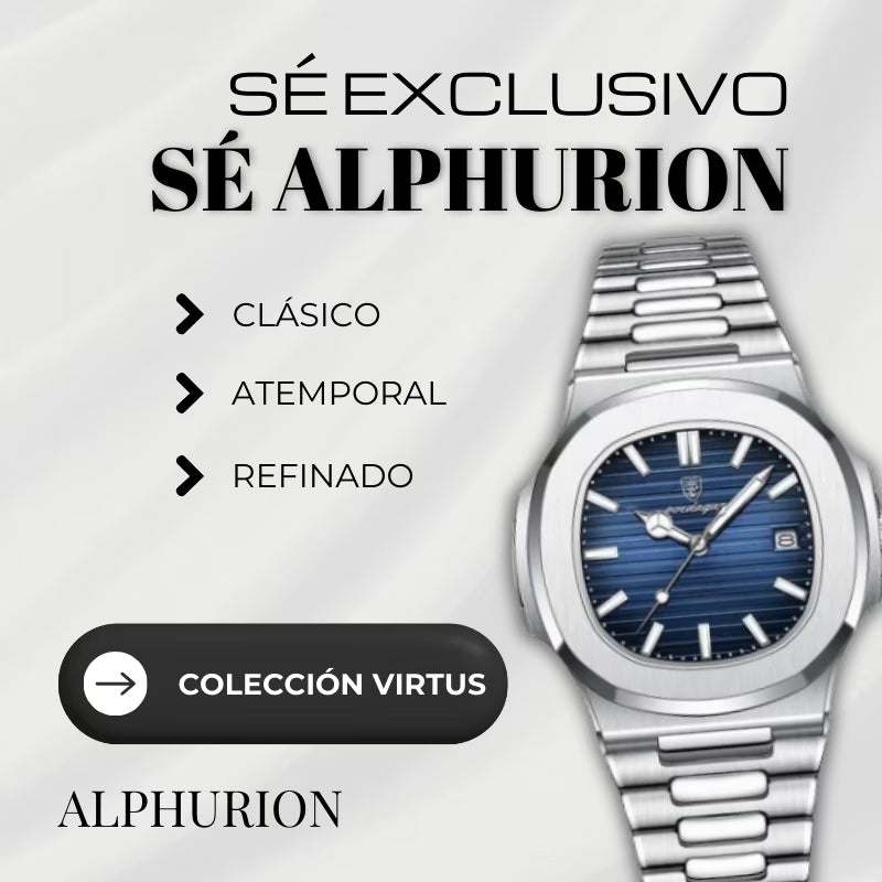 En Alphurion, hacemos que el lujo sea accesible, ofreciendo relojes con diseño refinado, materiales de calidad y acabado impecable. Cada pieza está pensada para transmitir elegancia y presencia, sin que tenga que renunciar a la practicidad o a un precio justo. Nuestro compromiso es transformar el concepto de lujo, llevando la sofisticación al alcance de todos.