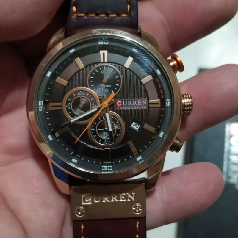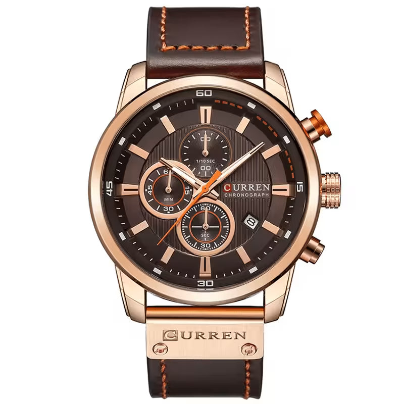 La caja de aleación metálica protege el mecanismo, mientras que el cuero de alta calidad garantiza comodidad durante todo el día, ya sea en el trabajo, en el ocio o en actividades deportivas.